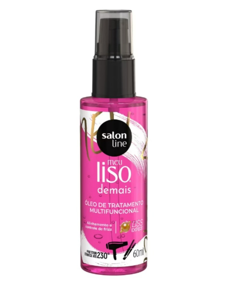 O Óleo de Tratamento Meu Liso Demais Multifuncional garante alinhamento e controle de frizz aos fios, além de proteção térmica de até 230º contra as ferramentas de calor