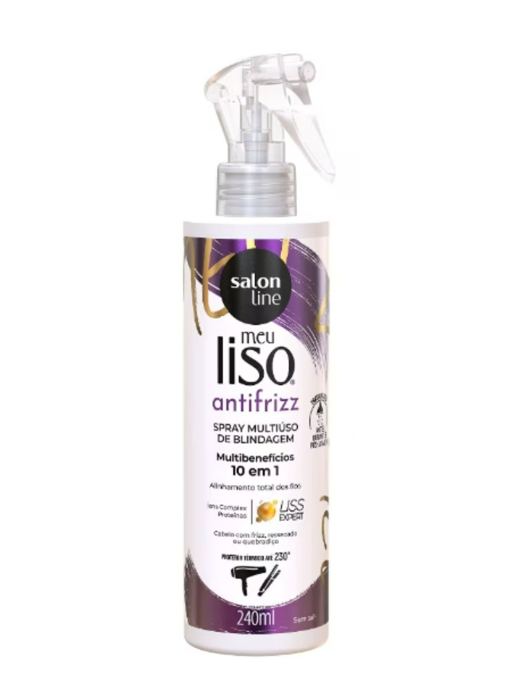 O Spray Multiúso Meu Liso Antifrizz conta com a tecnologia exclusiva Liss Expert que garante ação intensa, resultado rápido e proteção contra danos externos.