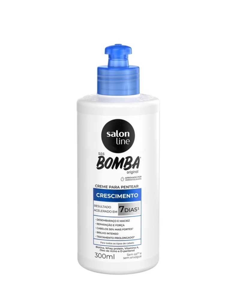 O Creme para Pentear S.O.S Bomba Original traz fórmula dermatologicamente testada que reduz a quebra dos fios, dá brilho, garante desembaraço e hidratação, além de ajudar o cabelo a crescer mais forte e saudável.