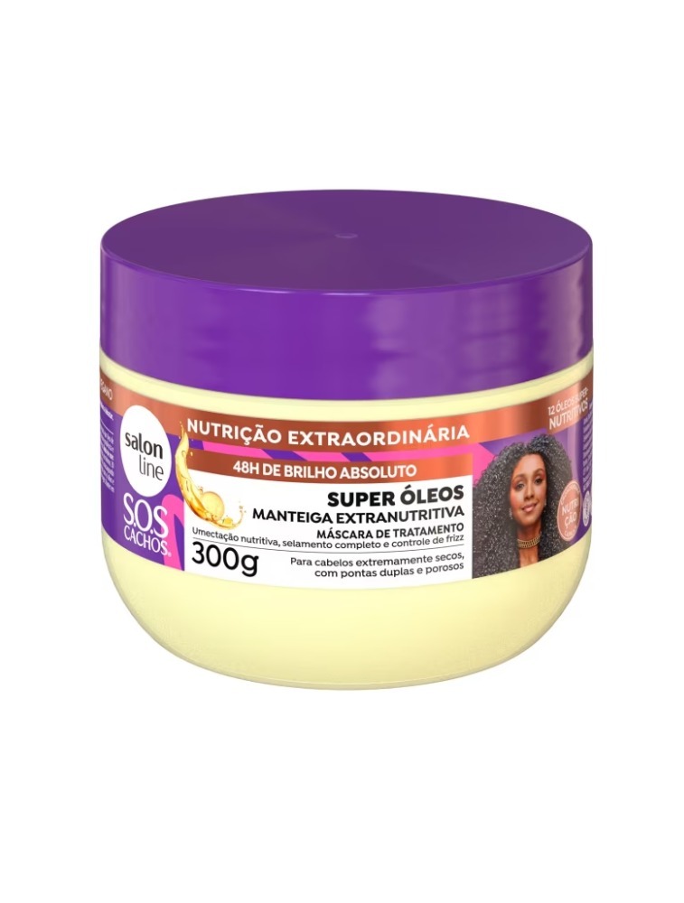 A Máscara de Tratamento S.O.S Cachos Super Óleos Manteiga Extranutritiva garante umectação nutritiva, selamento completo e controle de frizz aos fios.
