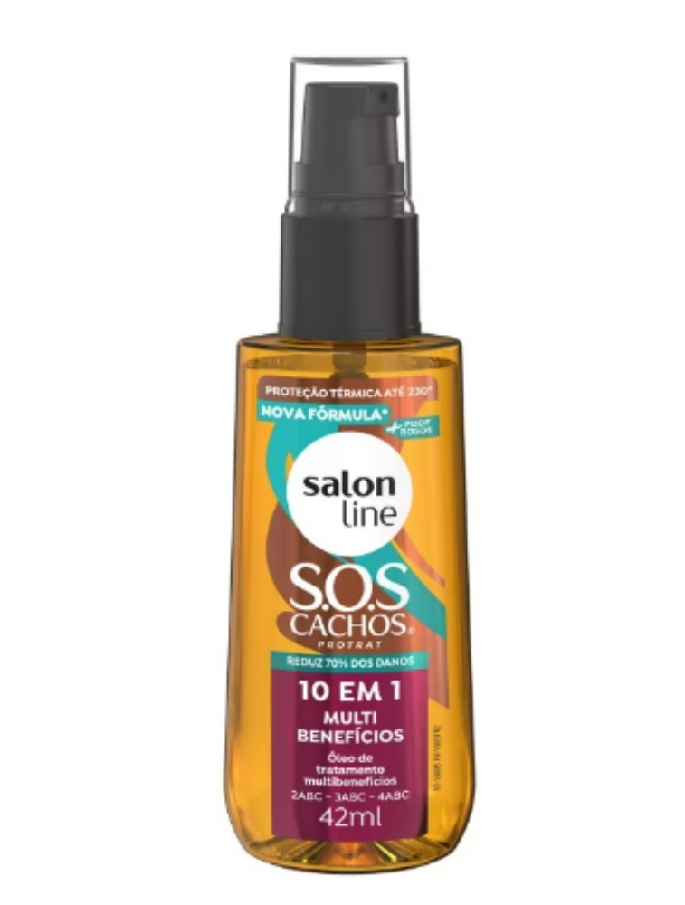O Óleo de Tratamento Condicionante 10 em 1 S.O.S Cachos promove 10 benefícios em um único produto. 1) Blindagem do frizz 2) Reparação imediata 3) Hidratação Intensa 4) Umectação absoluta 5) Brilho extremo 6) Controle de volume 7) Redução da quebra 8) Redução das pontas duplas 9) Ação Anti-flake 10) Proteção total
