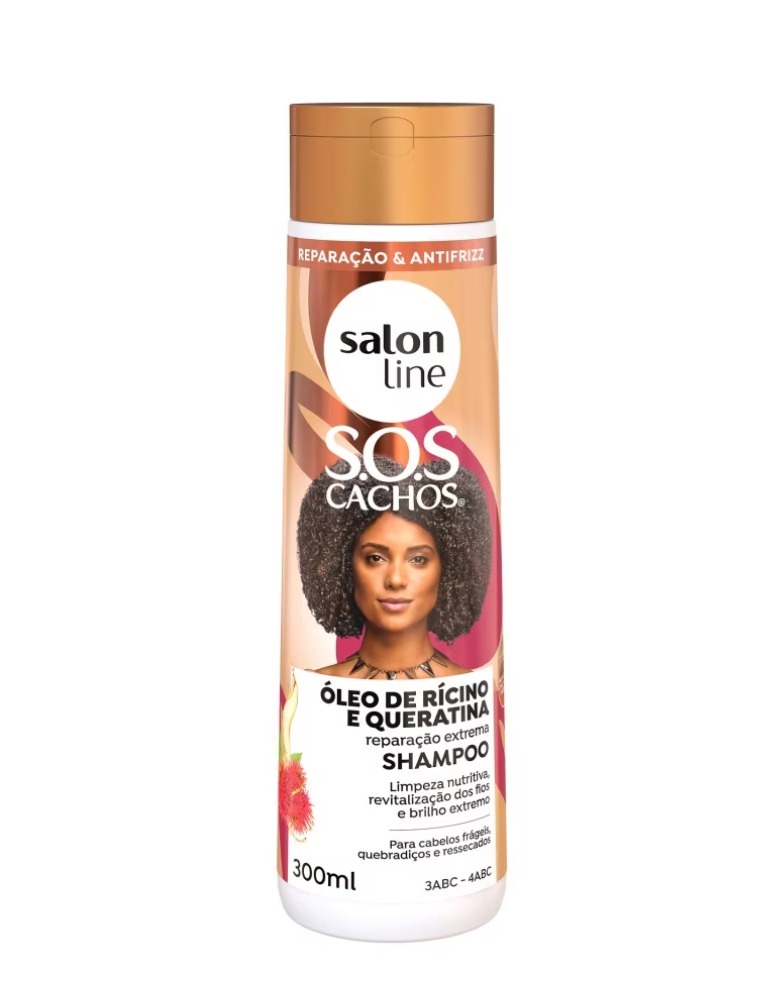 Para melhores resultados, use o condicionador, a máscara hidratante, o creme para pentear e ao ativador de cachos da linha S.O.S Cachos Rícino e Queratina Reparação Extrema Salon Line.