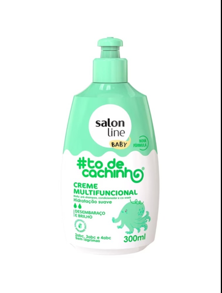 O Creme Multifuncional #todecachinho Baby auxilia no desembaraço, na hidratação e maciez dos cabelos do bebê. Pode ser usado como pré-shampoo, condicionador e co-wash. É hipoalergênico, testado dermatologicamente e sem lágrimas!