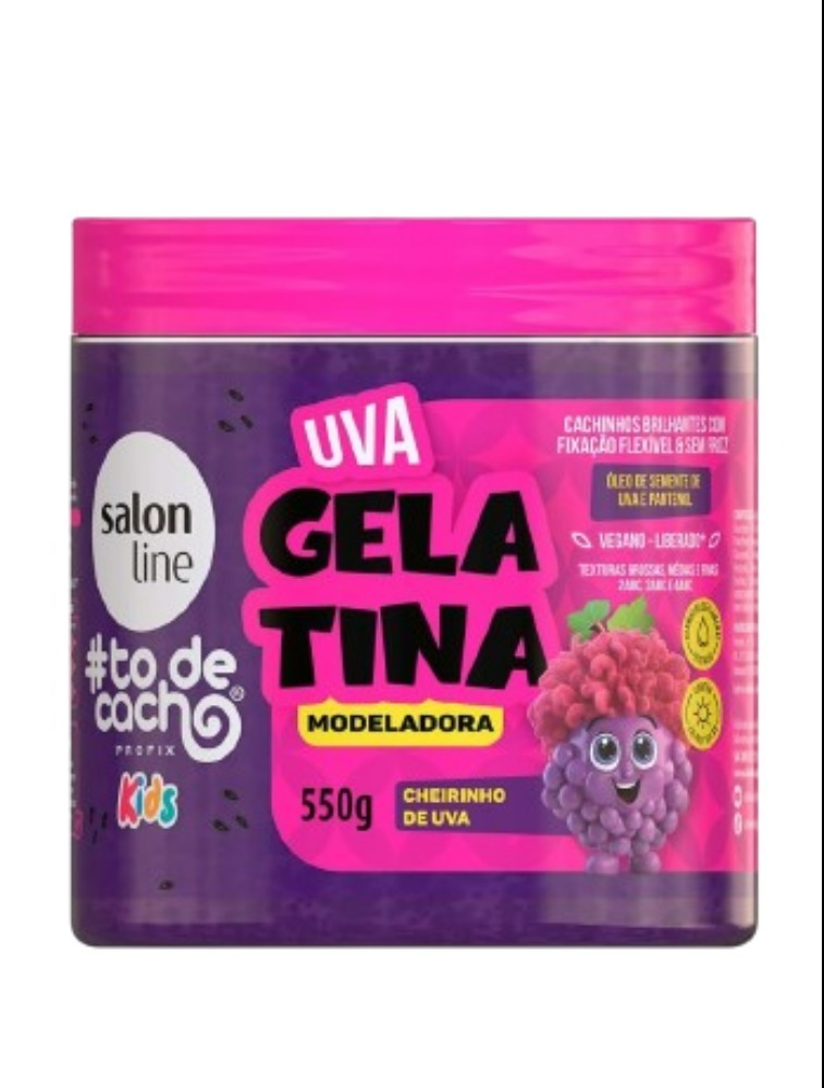 CUIDADO DIÁRIO DOS CACHINHOS. A Gelatina Modeladora #TodeCacho Kids Uva garante desembaraço, brilho intenso, fixação flexível e ação antifrizz, além de ser testada dermatologicamente. Aproveite para elevar o cuidado capilar dos pequeninos.