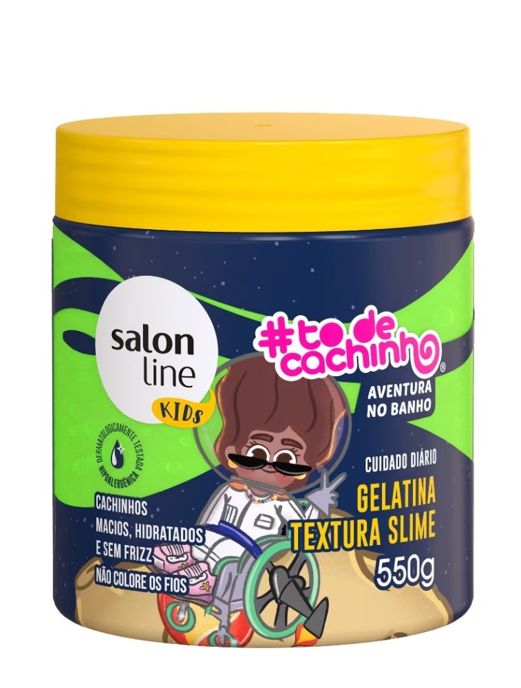 A Gelatina #todecachinho Kids Aventura no Banho garante day after, definição e a possibilidade de fazer diversas misturinhas para deixar os cabelinhos das crianças hidratados e bem cuidados. É hipoalergênica e testada dermatologicamente.