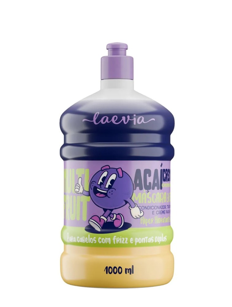 Laevia Mult Fruit Mascara 3 em 1 - 1000ml - Açaí Cremoso - para cabelos com frizz e pontas duplas;
