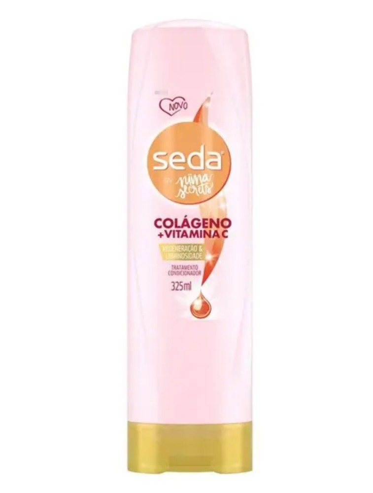 O Condicionador Seda By Niina Secrets Colágeno + Vitamina C possui fórmula que regenera e ilumina os fios. Esse condicionador é ideal para todos os tipos de cabelo que precisam de cuidado profundo, para regeneração* e luminosidade incríveis. Com colágeno, conhecido por ajudar a proporcionar firmeza, auxiliando na regeneração das fibras capilares enfraquecidas. Com vitamina C, um antioxidante essencial para a produção de colágeno e que atua como potencializador da luminosidade dos fios. Condicionador de cabelo ideal para quem busca regeneração* e brilho Descubra os ingredientes reconhecidos no cuidado da pele, agora nos seus cabelos com a nossa fórmula exclusiva cocriada com Niina Secrets Quem imaginou que usar os ingredientes reconhecidos no cuidado com a pele no cabelo seria tão incrível? Seda, em parceria com a influenciadora Niina Secrets, lançou a combinação dos sonhos! O novo Condicionador Seda By Niina Secrets Colágeno + Vitamina C combina dois dos ingredientes mais famosos de skincare, proporcionando cuidado profundo dos seus cabelos, para regeneração* e luminosidade incríveis! Quer saber mais sobre os ingredientes? O colágeno é conhecido por ajudar a proporcionar firmeza, auxiliando na regeneração das fibras capilares enfraquecidas. Por seu lado, a vitamina C é um antioxidante, essencial para a produção de colágeno e que atua como potenciador da luminosidade dos fios. O Condicionador Seda By Niina Secrets Colágeno + Vitamina C é ideal para o cabelo que precisa de regeneração intensa dos cabelos danificados, deixando os fios suaves, fortes e com brilho, sem pesar. Dúvidas de como usar? É super simples e fácil! Passo a passo: depois do shampoo, aplique no cabelo molhado, especialmente nas pontas. Massageie suavemente. Se você quiser, pode enxaguar só durante 30 segundos. Fazemos produtos para cabelos que gostam de experimentar, explorar, sonhar e descobrir. Vamos ser sinceras: nos dias de hoje temos mais possibilidades do que nunca. Cada segundo é uma oportunidade de viver ao máximo. *Regeneração da suavidade, brilho e força devido à quebra com o uso da linha completa.