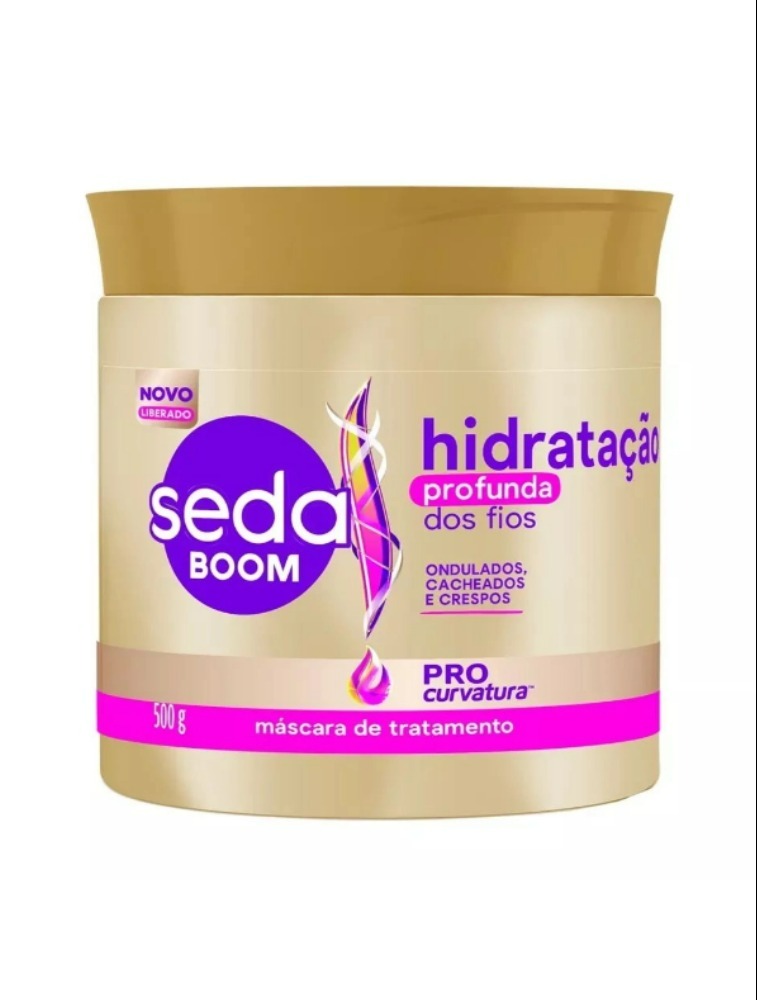 A nova geração da linha expert Seda Boom ProCurvatura, traz uma tecnologia exclusiva para definir, modelar e expressar o volume de todos os tipos de curvaturas, garantindo seu resultado duradouro por até 72 horas. Indicado para onduladas, cacheadas e crespas, a nova Máscara de Tratamento Seda Boom Hidratação Profunda dos Fios une a tecnologia ProCurvatura com ingredientes da natureza como Óleo de Macadâmia e Óleo de Rícino, para hidratar e nutrir seu cabelo profundamente, ativando seu brilho e devolvendo a maciez aos fios. Além disso, possui fórmula liberada, ótimo para usar também no Day After (nos dias posteriores à lavagem e finalização). Além da Máscara de Tratamento Hidratação Profunda dos Fios, a linha também conta com outros produtos como: Shampoo, Condicionador e diversos Cremes para Pentear. O que são produtos com fórmula liberada? São cosméticos que não possuem (ou possuem em pouca quantidade) substâncias que podem agravar o ressecamento, principalmente cabelos cacheados, como o sulfato, o petrolato, a parafina, os óleos minerais e os parabenos. Esses produtos com fórmula liberada promovem uma limpeza de maneira mais suave, mantendo a hidratação natural dos cabelos e ajudando a evitar o ressecamento.