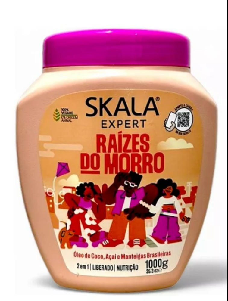 A linha Raízes do Morro Skala Expert celebra a energia vibrante brasileira. mergulha no passado e revive tradições que passam de geração em gera-ção. Sabemos que entre becos, escadarias, ruelas e quebradas, encontra-se a voz da diversidade e as raízes do Brasil. A Skala é a marca pioneira que leva beleza para todos com valores acessíveis, somos apaixonados pelo Brasil e pela cultura brasileira. A formulação da linha proporciona uma super nutrição para os fios! Sua composição é enriquecida com óleo de coco, açaí e manteigas brasileiras, uma combinação perfeita que entrega um alto poder de penetração na fibra capilar, devolvendo a maciez, a força e o brilho.