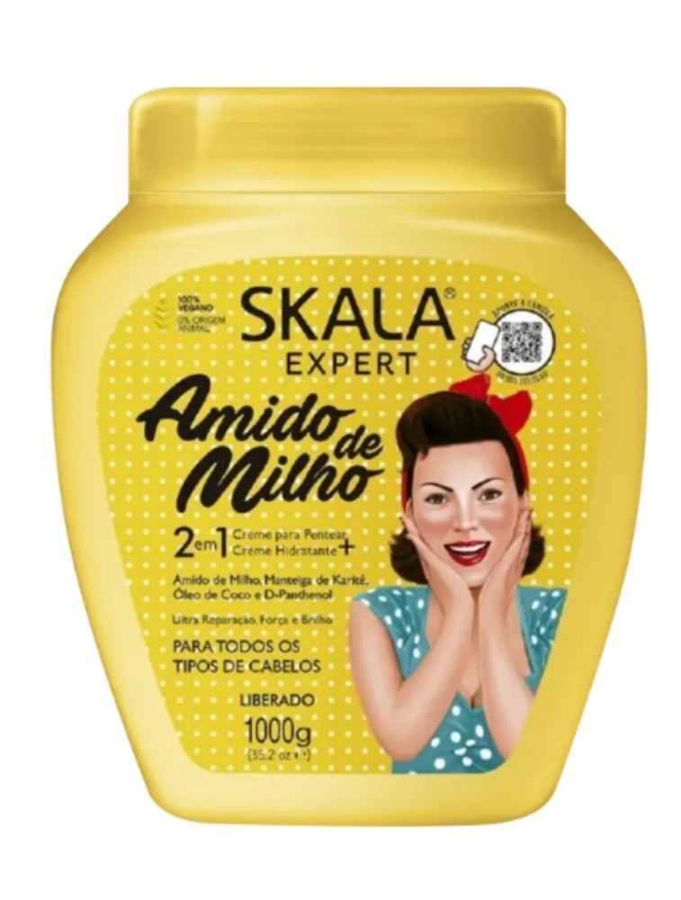 Creme de hidratação multifuncional para todos os tipos de cabelos. Skala Expert Amido de Milho proporciona tratamento ultra reparador.