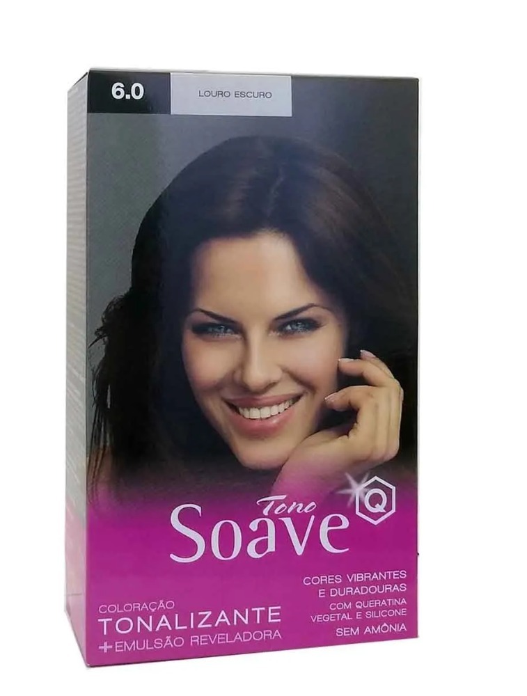 Coloração Tonalizante Tono 6.0 Louro Escuro - Soave Capelli Conteúdo da embalagem: 1 Frasco de Emulsão Reveladora Tono Soave 4% 80ml; 1 Bisnaga de Coloração Tonalizante Tono Soave 40g; 1 Sachê Creme Protetor da Cor 12g; 1 Par de Luvas Descartáveis. O Tonalizante Tono 6.0 Louro Escuro concebido com altos padrões de tecnologia e controle de qualidade conta em sua fórmula com corantes especiais e ativos que vão deixar seus cabelos com cores vibrantes e duradouras. Possui corantes de longa duração, perfeita cobertura dos cabelos brancos e uma grande variedade de cores e tonalidades. Obtida através de processo tecnológico, a queratina vegetal é extraída das proteínas da soja, do trigo e do milho. Possui baixo peso molecular e penetra nos fios reparando, estruturando e deixando os brilhantes, macios e com movimento. O silicone garante maciez e brilho para seus cabelos. Atenção: É importante que seja realizada uma prova de toque primeiro. Modo de Aplicar Coloração Tonalizante Tono 6.0 Louro Escuro: Em um recipiente não metálico, coloque todo o creme da bisnaga, adicione 80ml de emulsão reveladora. Misture até obter um creme homogêneo. Os cabelos devem estar secos, desembaraçados, não lavados, e sem produtos de finalização (spray, gel, mousse, etc). Use luvas e proteja a roupa. Precauções: Cuidado. Contém substâncias passíveis de causar irritação na pele de determinadas pessoas. Antes de usar, faça a prova de toque. Pode causar reação alérgica. Não usar nos cílios e sobrancelhas. Não aplique o produto se o couro cabeludo estiver irritado ou lesionado. Evite contato com os olhos. Caso ocorra, lavar imediatamente com água em abundância. Não utilize sobre cabelos alisados, relaxados ou em que tenham sido aplicados qualquer tipo de henê, tinturas progressivas ou à base de sais metálicos. Enxaguar bem os cabelos após aplicação. Usar luvas adequadas. Manter fora do alcance de crianças. Não usar em crianças. Manter o produto em local seco e fresco a temperatura ambiente. Proteger do calor da luz solar direta.