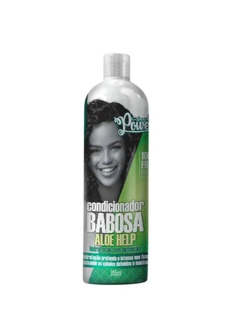 Condicionador Hidratante Soul Power - Aloe Help Babosa Hidratação profunda e intensa nos fios, deixando os cabelos definidos e macios. Sua formulação combina a mucilagem hidratante da Babosa com ativos naturais selecionados para desembaraçar e hidratar toda a extensão dos fios, deixando-os com aspecto natural, sedoso e toque macio. COMO USAR: Após lavar os cabelos com o shampoo ALOE WASH, aplicar o CONDICIONADOR ALOE HELP nos cabelos molhados do comprimento às pontas. Desembaraçar os fios com os dedos e enxaguar completamente.