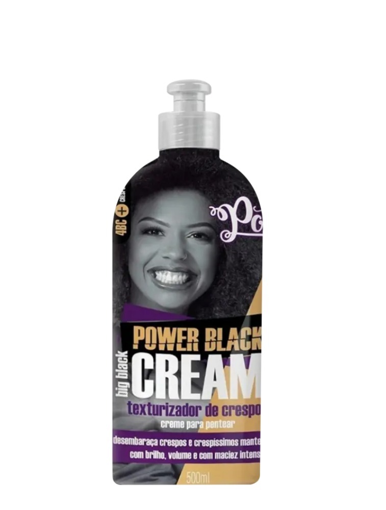 O Creme para Pentear Soul Power Black Big Black Cream desembaraça com delicadeza os cabelos crespos & crespíssimos, definindo e proporcionando nutrição, hidratação e força para os fios.