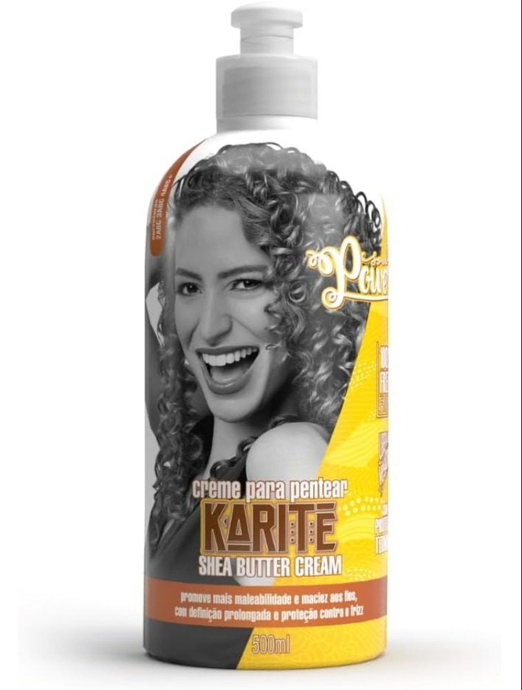 O Creme Para Pentear Karité Shea Butter Cream Soul Power proporciona hidratação intensa e maciez aos cabelos. Sua fórmula, enriquecida com uma carga potente de manteiga de karité e ativos graxos, cria uma barreira na fibra capilar que impede a perda de água, mantendo os cachos hidratados e com maciez duradoura. Além disso, protege os fios contra o frizz, garantindo que os cachos e crespos permaneçam definidos por mais tempo.