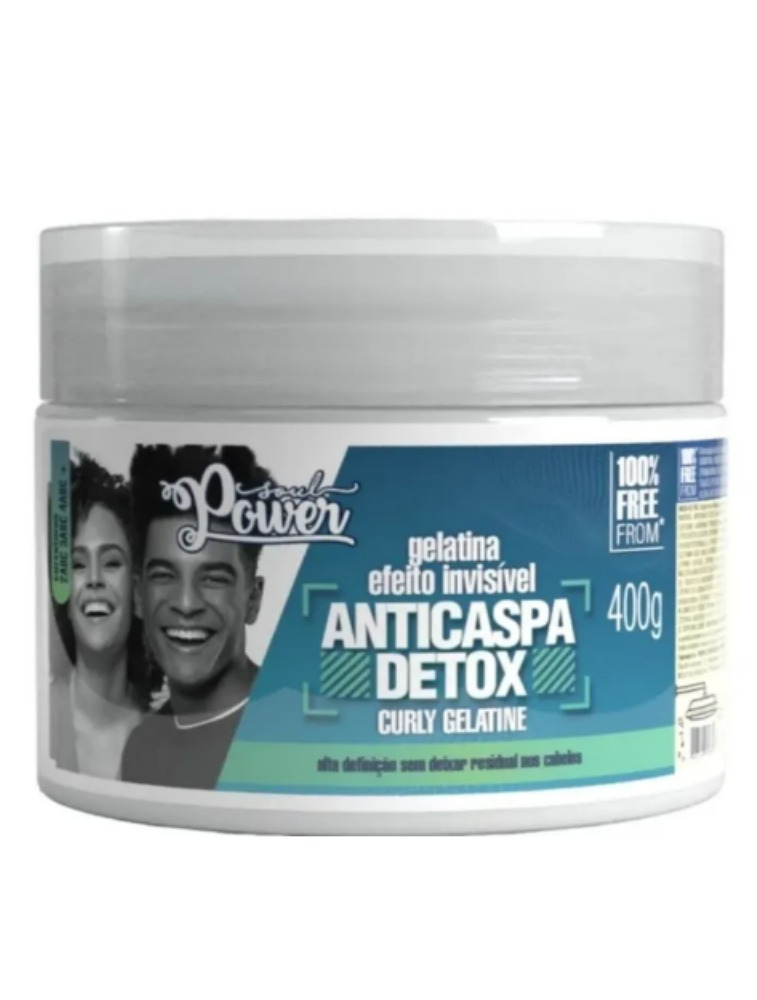 Gelatina capilar anticaspa para cabelos cacheados, crespos ou ondulados.. Soul Power Anticaspa Detox modela e ativa os cachos.