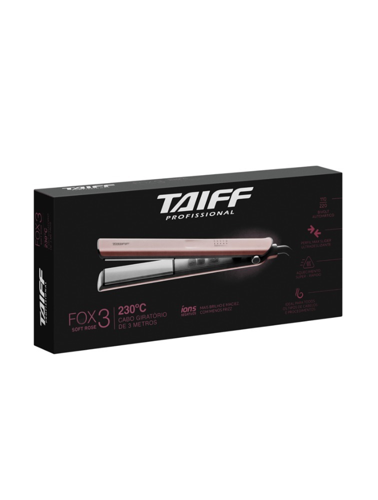 A união perfeita entre design e tecnologia é a Chapa Fox 3! Além de oferecer 5 temperaturas ajustáveis, variando de 150ºC a 230ºC, ela ainda vem em duas cores apaixonantes: Soft Rose e Soft Green. Os íons negativos selam as cutículas, proporcionando um brilho intenso, maciez e redução do frizz. Com um perfil ultradeslizante e antiaderente, é ideal para procedimentos químicos, garantindo resultados impecáveis. Seu design é cuidadosamente elaborado para alcançar máxima eficiência em alisamentos e modelagens, proporcionando resultados impecáveis. Com um cabo giratório de 3 metros, a Chapa Fox 3 garante mobilidade total ao profissional. Tenha essa combinação perfeita entre estilo e tecnologia em suas mãos!