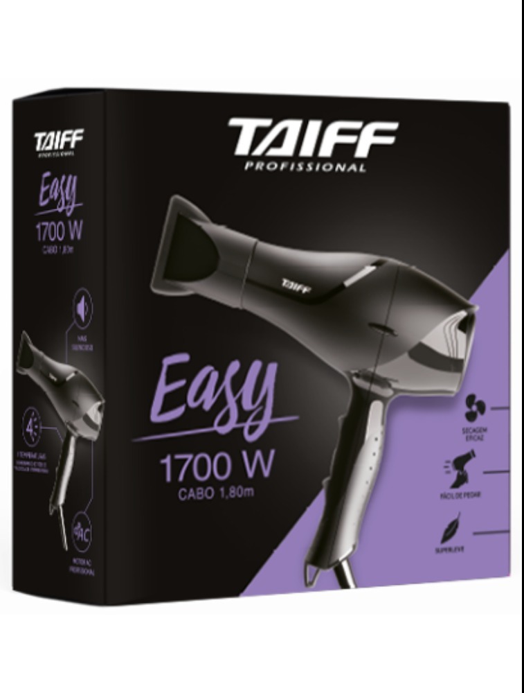 Praticidade ao seu alcance. Essa é a definição perfeita para o secador Easy. Com 1700W de potência, é ideal para uso pessoal, proporcionando agilidade e rapidez na secagem e modelagem dos cabelos. Possui motor AC Profissional com maior durabilidade, chave seletora que combina temperaturas e velocidades, oferecendo 4 temperaturas diferentes. E o cabo de 1,80 metro de comprimento proporciona mobilidade na medida certa.