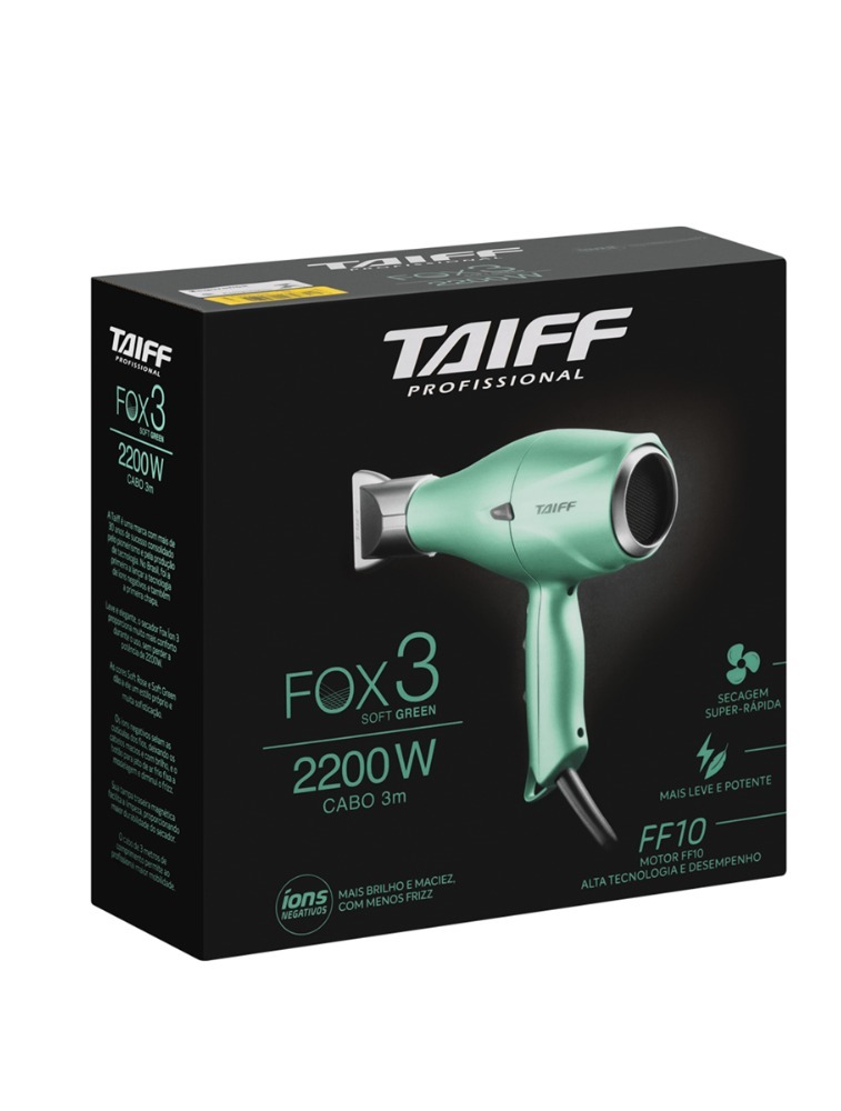 Experimente o máximo em conforto e estilo com o secador Fox 3. Elegante e potente, ele une toda a tecnologia TAIFF e praticidade à potência de 2200W. Os íons negativos selam as cutículas para cabelos com maciez e brilho, enquanto o botão de jato de ar frio fixa a modelagem e reduz o frizz. Com sua tampa traseira magnética, a limpeza é fácil e prática, proporcionando uma durabilidade ainda maior ao produto. Além disso, o cabo de 3 metros oferece ao profissional mobilidade e liberdade para trabalhar. Você ainda pode escolher entre as cores Soft Rose e Soft Green, garantindo um estilo próprio e muita sofisticação! Eleve seu padrão de beleza e transforme cada dia em uma experiência de beleza única! Código Inmetro: 218.009/21
