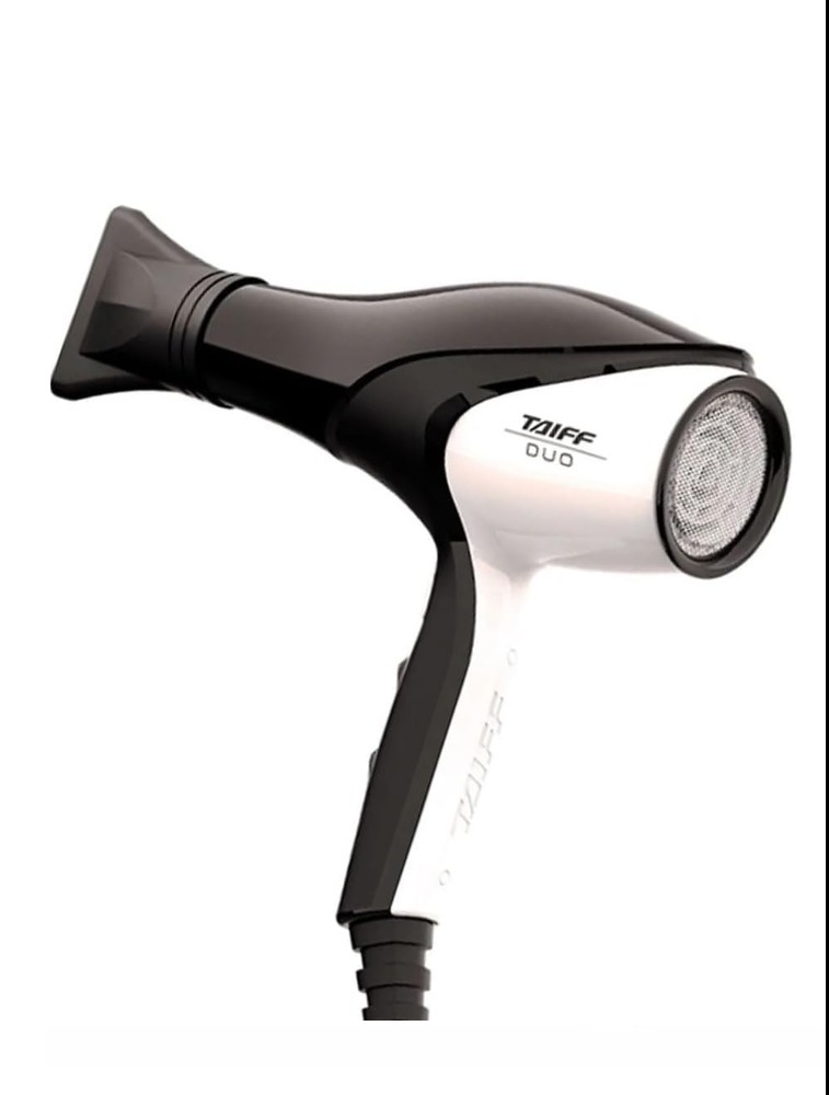 Versátil e sofisticado para top profissionais. Esse é Taiff Duo. Com design exclusivo, possui íons negativos que proporcionam mais brilho e maciez aos fios, com menos frizz, e botão para jato de ar frio que fixa a modelagem. A tampa traseira magnética removível garante facilidade e agilidade na limpeza, proporcionando maior durabilidade do secador. O cabo de 3 metros de comprimento permite ao profissional maior mobilidade para os mais variados tratamentos e penteados.