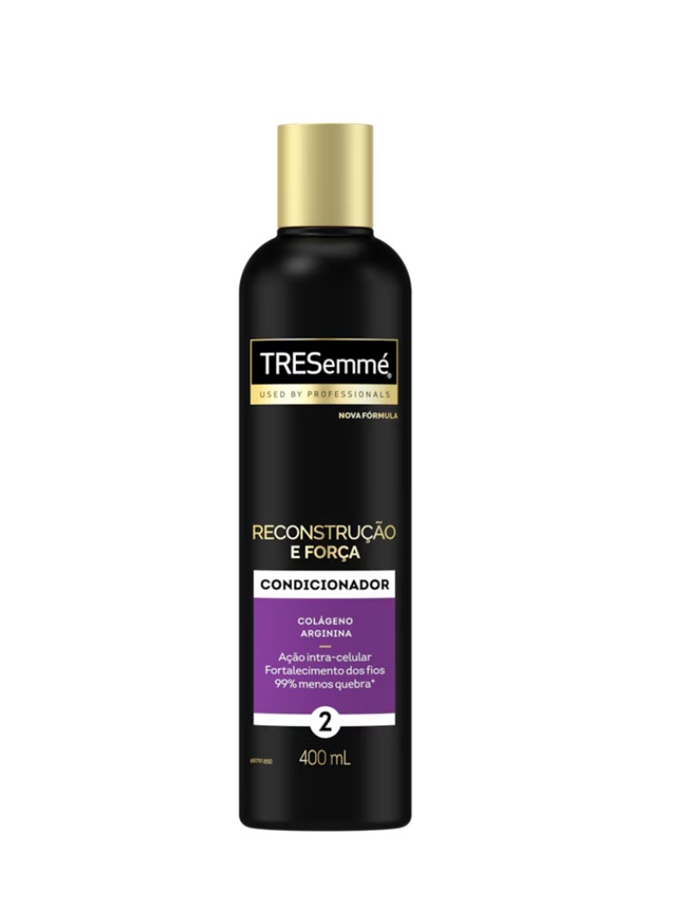 O condicionador Tresemmé Reconstrução e Força possui ação intra-celular com colágeno e arginina que restaura desde as camadas mais profundas para um cabelo mais forte e reduz a quebra dos fios em até 99% desde o primeiro uso para uma reconstrução e proteção máxima antiquebra.