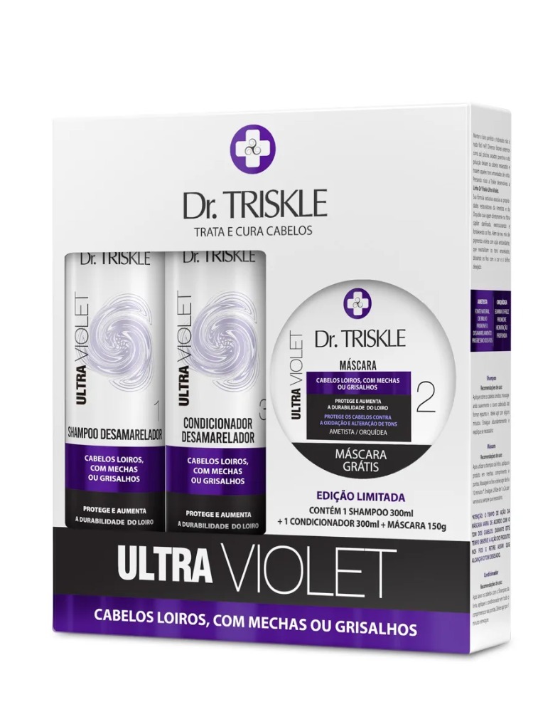 Manter o loiro perfeito e hidratado não é nada fácil, né?! Diversos fatores externos, como sol, piscina, secador, prancha, e até a poluição, deixam os cabelos ressecados e trazem aqueles tons amarelados de volta. Pensando nisso a Triskle desenvolveu a Linha Dr. Triskle Ultra Violet.
