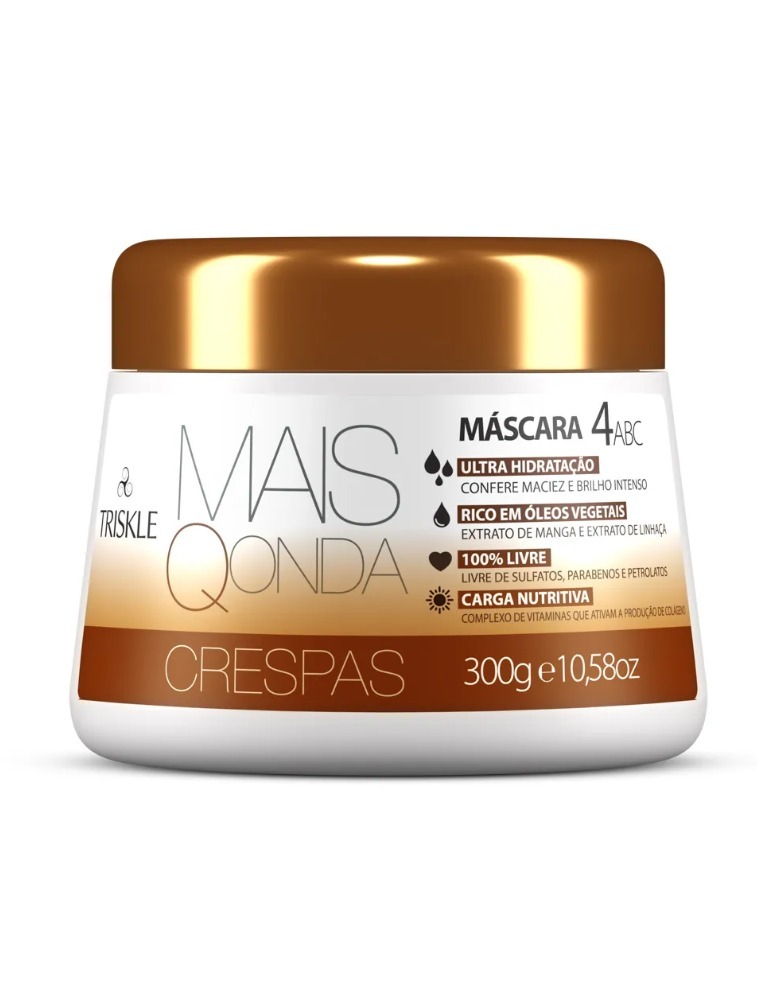 Rica em Vitaminas A, C e complexo B, a Máscara Mais Q Onda Crespas ativa a produção do colágeno natural que regenera a fibra capilar, uniformizando a cutícula e combatendo o ressecamento e o frizz. Sua ação umectante auxilia na força e proteção dos fios, conferindo crespos extremamente macios e com uma luminosidade incrível!