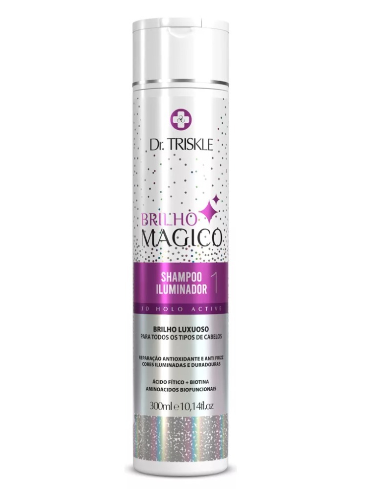 Experimente a sensação de cabelos luxuosos com a linha Brilho Mágico da Dr. Triskle. Transforme o aspecto apagado dos fios em cabelos lindos e radiantes. Sua fórmula com o exclusivo 3D Holo Active possui ativos reparadores que