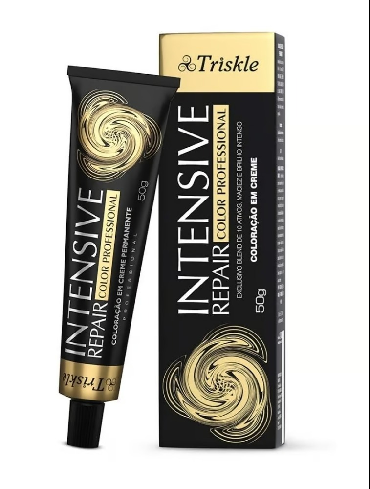 A Coloração em Creme Triskle Intensive Repair 12.11 Louro Platinado 50g possui fórmula composta por um blend de 10 ativos essenciais (algodão, macadâmia, abacate, gérmen de trigo, milho, girassol, amêndoa doce, canola, cártamo e semi di lino) que proporcionam maciez, brilho e saúde. Acompanha um tratamento condicionante, que promove mais hidratação, brilho e cor intensa. Oferece cobertura total dos fios brancos, além do brilho intenso e alta durabilidade da cor.