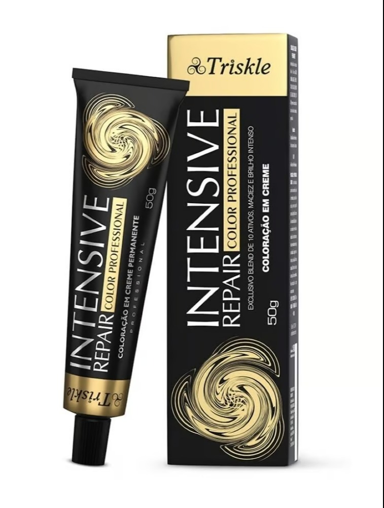 A Coloração em Creme Triskle Intensive Repair 7.3 Louro Médio Dourado 50g possui fórmula composta por um blend de 10 ativos essenciais (algodão, macadâmia, abacate, gérmen de trigo, milho, girassol, amêndoa doce, canola, cártamo e semi di lino) que proporcionam maciez, brilho e saúde. Acompanha um tratamento condicionante, que promove mais hidratação, brilho e cor intensa. Oferece cobertura total dos fios brancos, além do brilho intenso e alta durabilidade da cor.