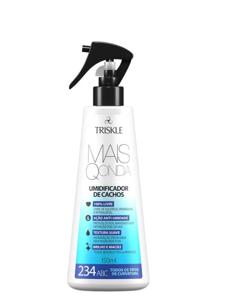 O Umidificador de Cachos Triskle Mais Q Onda foi desenvolvido especialmente para realçar a beleza natural dos cabelos cacheados, crespos e ondulados. Com uma formulação leve e eficiente, ele hidrata profundamente e trata os fios sem deixá-los pesados ou oleosos. Ideal para manter os cachos definidos, saudáveis e protegidos ao longo do dia. Enriquecido com ativos potentes como Extrato de Quinoa e Poliquaternium-55, o produto proporciona nutrição intensa, reduz a quebra e elimina o frizz, formando uma película protetora contra agentes externos. Liberado para técnicas Low e No Poo, é uma excelente escolha para quem busca definição, brilho e resistência para seus cachos com um toque sedoso e natural.