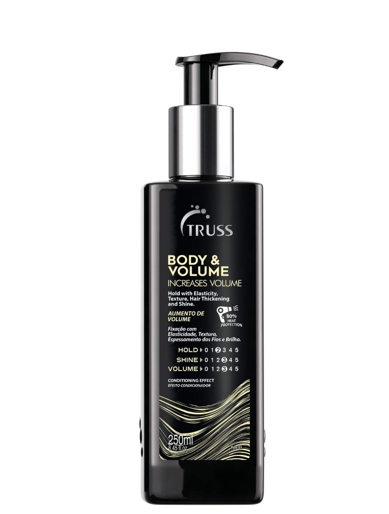 Leave-in para cabelos finos, com pouco volume e tendência à raiz oleosa. Truss Body & Volume proporciona volume, textura, corpo e movimento.