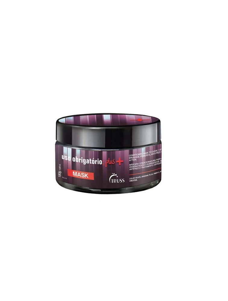 Recomendada para cabelos enfraquecidos, fragilizados, com quebra e ressecados, a Máscara Truss Uso Obrigatório Plus+ é um poderoso aliado para a sua rotina de autocuidado. Cabelos totalmente nutridos e reconstruídos de dentro para fora com a poderosa tecnologia da Máscara Truss Uso Obrigatório Plus+. Reduz a quebra e revitaliza o fio enfraquecido desde a primeira aplicação. Assim, suas madeixas ficam nutridas e extremamente brilhantes, além de ganharem muito mais vida e movimento. Sua formulação potente reduz o frizz e promove proteção contra as agressões causadas pelos procedimentos químicos e por ferramentas de calor. Promove fios fortalecidos e livres dos danos cotidianos, reparação profunda para todas as áreas da fibra capilar, confere vitalidade, nutrição e reduz drasticamente a quebra dos fios, além de prático para ser incorporado à rotina diária de cuidados com as madeixas. A máscara faz parte de uma linha de tratamento completíssima que vai deixar seus cabelos com mais vivacidade, como você sempre sonhou!