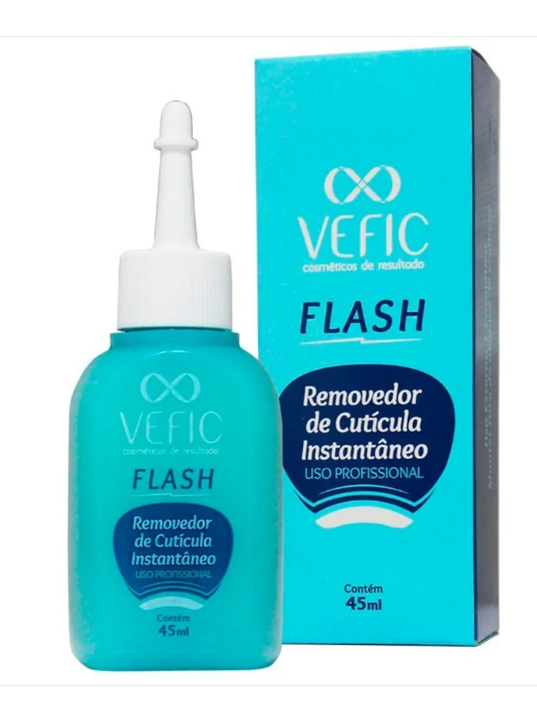 Removedor de Cutícula Instantâneo Flash Vefic criado especialmente para a delicada e complexa estrutura da cutícula, contém em sua fórmula dois grandes ativos, Aloe Vera e Alantoína, que aumentam a retenção de umidade na pele, contribuindo para a cicatrização e diminuição da irritação, restaurando e protegendo o tecido cutêneo.