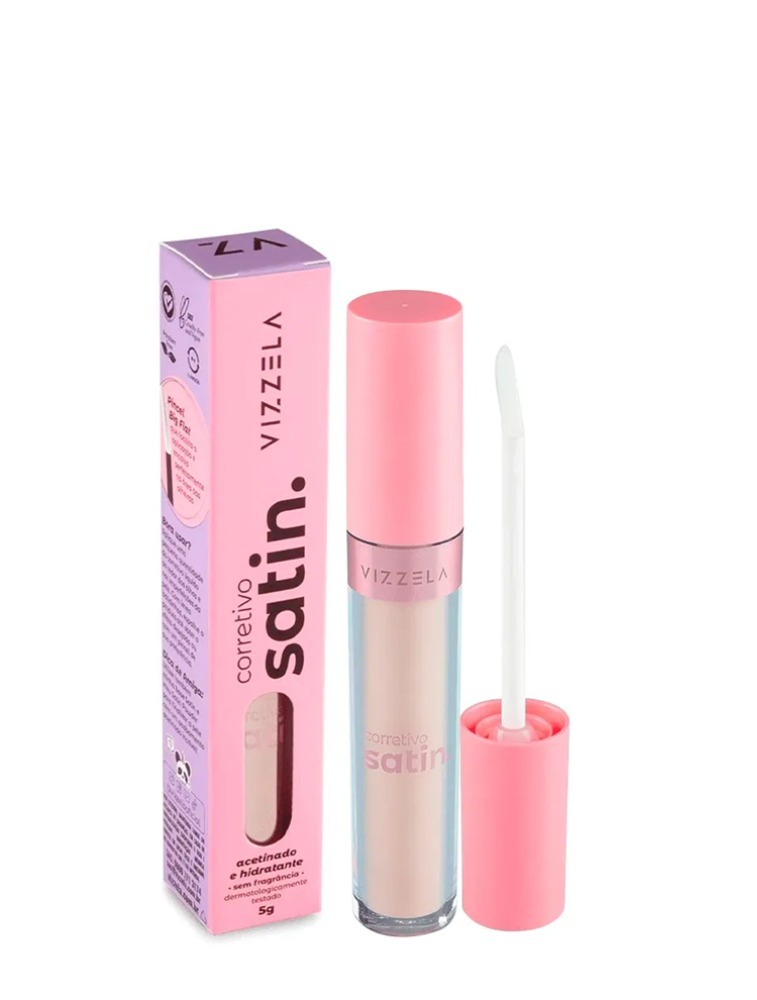 O Corretivo Satin possui um acabamento acetinado com alta cobertura, deixando a pele com um toque de radiancia devido ao ativo Gatuline Radiance®, além da hidratação instantânea promovida pela combinação de ácido hialurônico e biosacarídeo. E a rosa mosqueta que auxilia no tratamento das olheiras.