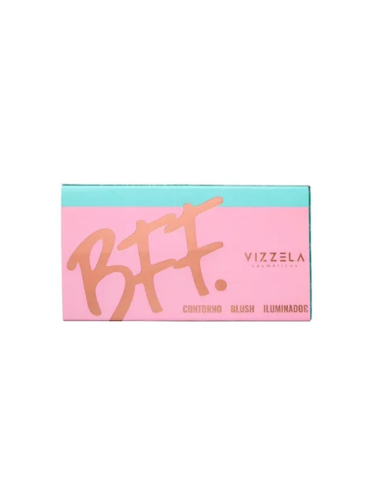 Paleta de maquiagem com blush, contorno e iluminador. Versátil, Vizzela Cosméticos BFF Best Friends Forever é ideal para criar uma make poderosa com praticidade.