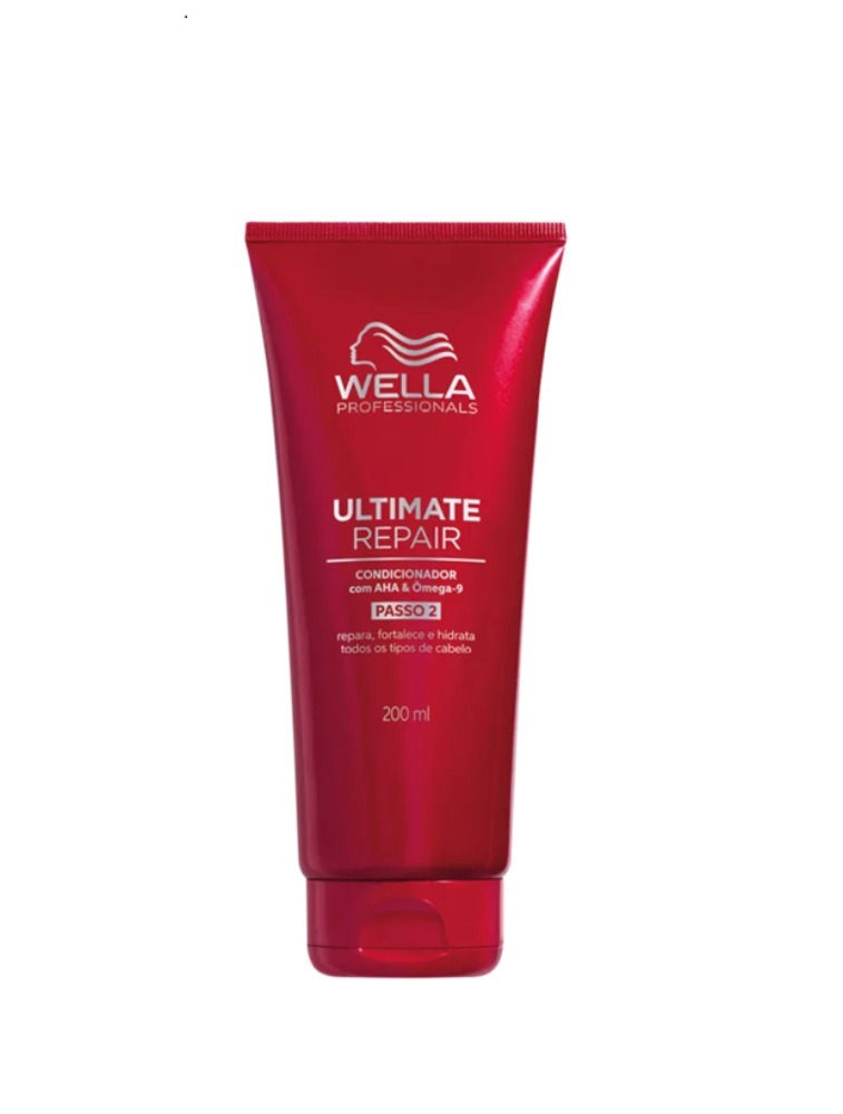 Condicionador para cabelos danificados. Wella Professionals Ultimate Repair Passo 2 traz mais força ao cabelo, reparação intensa, suavidade e brilho aos fios.