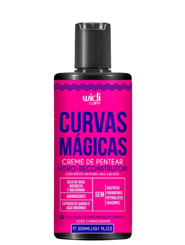 Creme de pentear para cabelos cacheados. Widi Care Curvas Mágicas é hidro-reconstrutor e desenvolvido para todos os tipos de curvaturas.