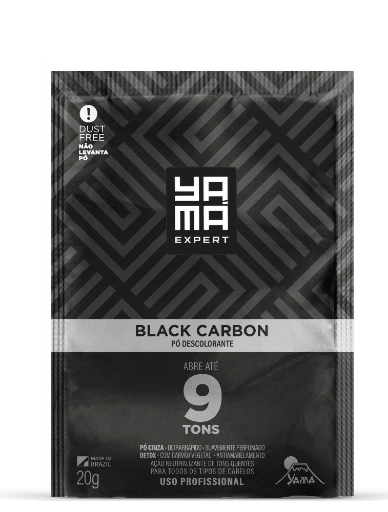 O Pó Descolorante Black Carbon Yamá Expert possui um conceito inovador de descoloração graças a sua pigmentação negra que potencializa o esfriamento do tom durante o clareamento, excluindo e neutralizando o aparecimento de reflexos amarelos não desejados, pois o carvão vegetal presente em sua formulação age como um Detox natural nos fios, além de possuir propriedades purificantes permitindo criar uma base mais neutra na qual o profissional possa trabalhar com maior segurança. Abre até 9 tons e não levanta pó durante a utilização, graças ao sistema Dust Free.
